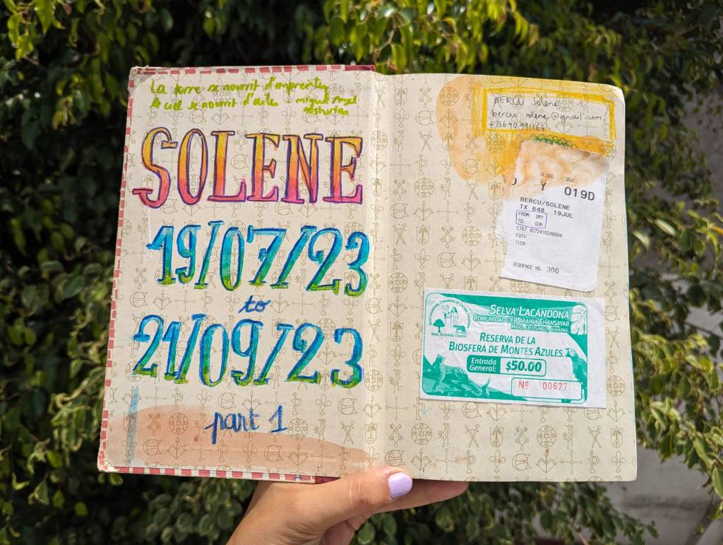 - Un petit herbier de feuilles et de fleurs séchés (souvent accumulés au début du voyage et qui séchent au fond du carnet), ça fait toujours plaisir