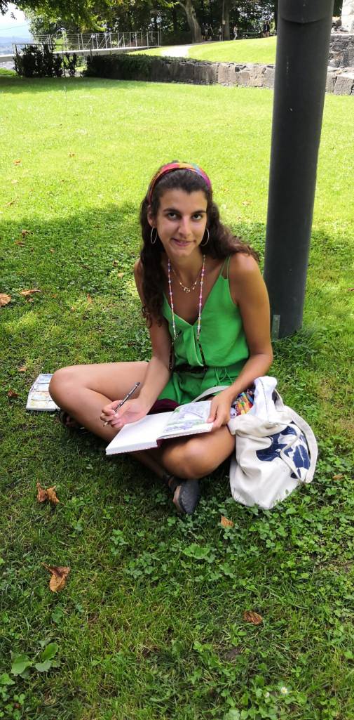 - Des curieux viennent souvent me regarder dessiner, j’adore ces moments. Je me tourne pour qu’ils voient mieux ce que je fais et je leur montre des pages pérécdentes. C’est un beau partage, surtout pour communiquer (sans trop parler) avec des locaux.