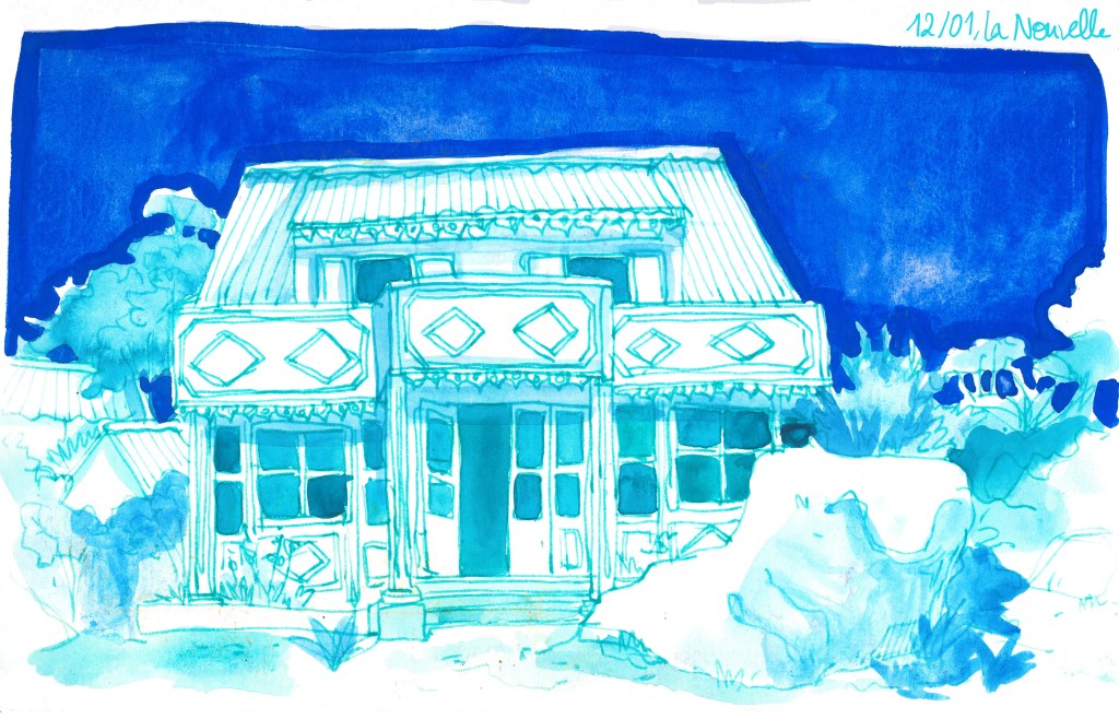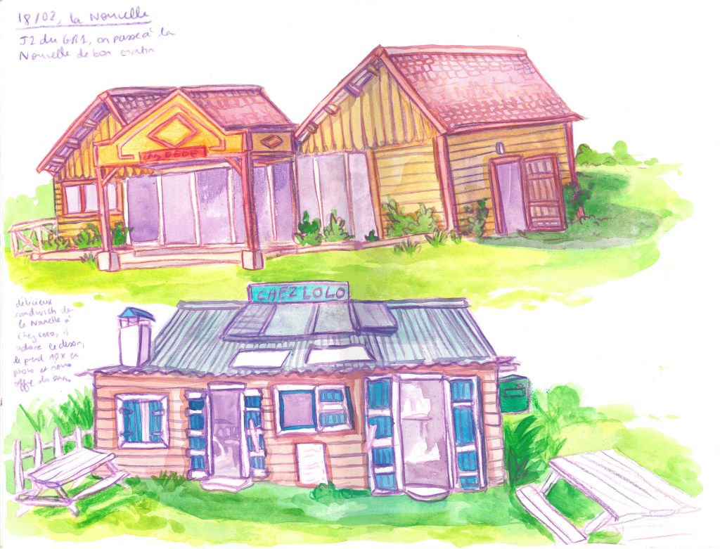 Une autre super rencontre, pendant qu’on attendait nos sandwich à la Nouvelle, Chez Lolo, je dessine la case. Lolo est très fan « quoi mais j’ai fait 3 sandwich et toi tu as eu le temps de faire tout ça ? » il prend pleins de photos et nous offre des bananes. Je suis enfin une artiste rémunérée.