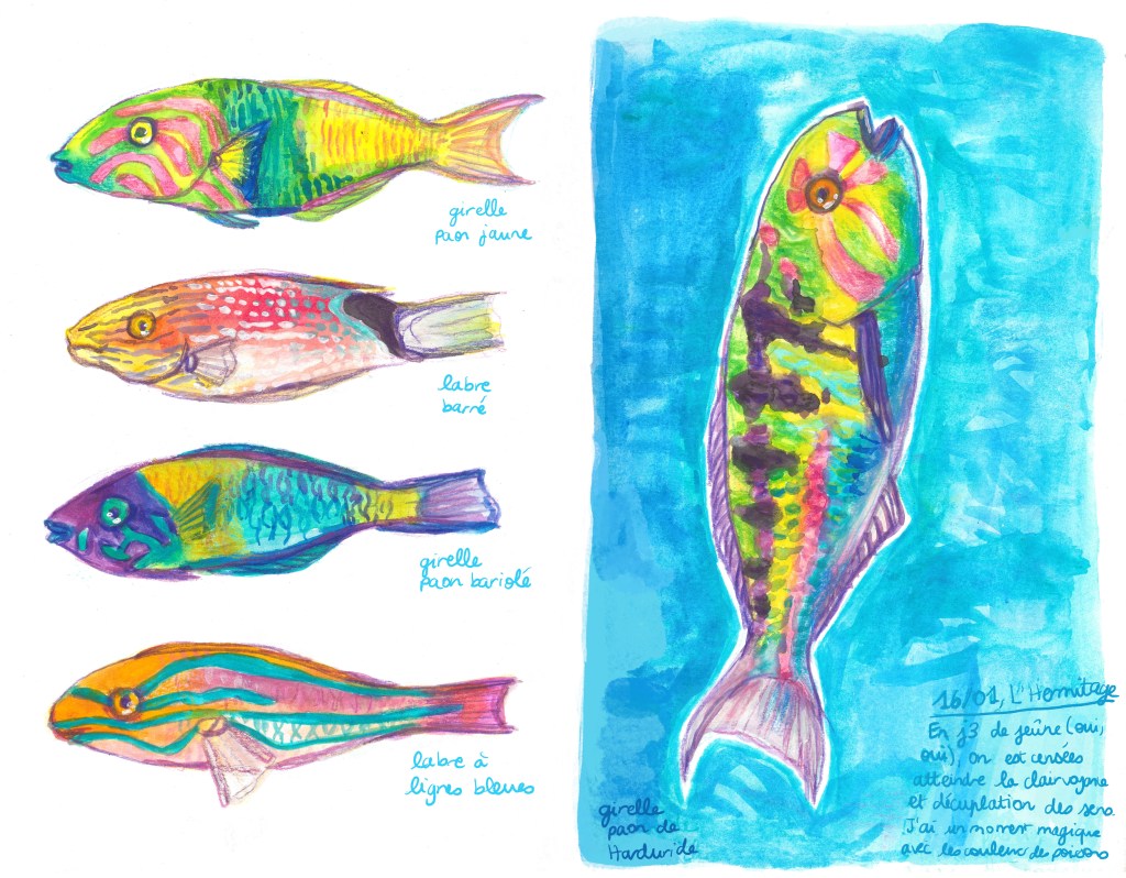 J’adore observer la vie marine. Le cycle des poissons Picasso qui sont agressifs à la saison des amours pour protéger leurs oeufs, puis quelques semaines plus tard on voit apparaître pleins de mini Picasso partout. C’est génial. Je suis aussi subjugée par les couleurs des poissons, des oeuvres d’art chatoyantes et vivantes.