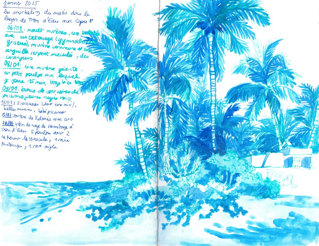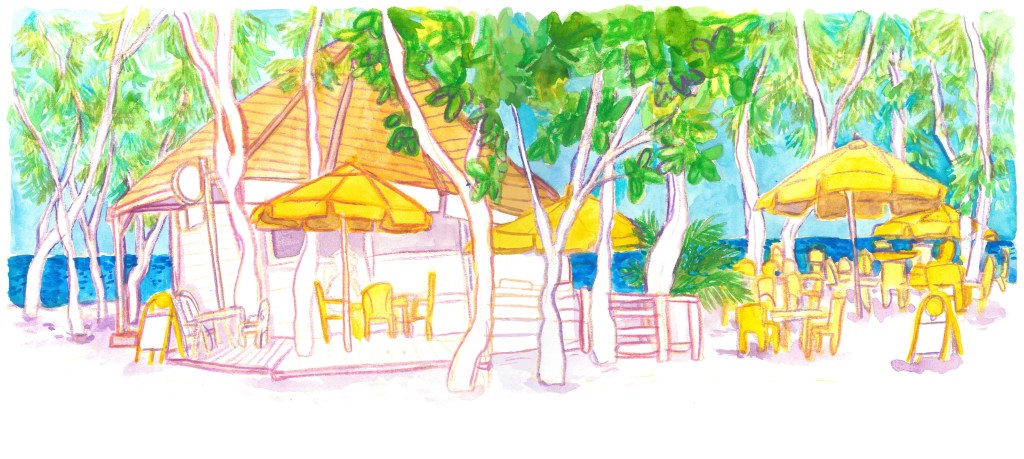 Je vis au bord de l’eau, sur la côte Ouest comme toute bonne touriste partie à la recherche de soleil et de sable chaud. Le matin, je vais à la plage pour lire, dessiner et mettre la tête sous l’eau saluer mes amies les murènes. Ces petits moments qui rendent le quotidien si merveilleux et qui me fait penser plus d’une fois que je suis au Paradis.