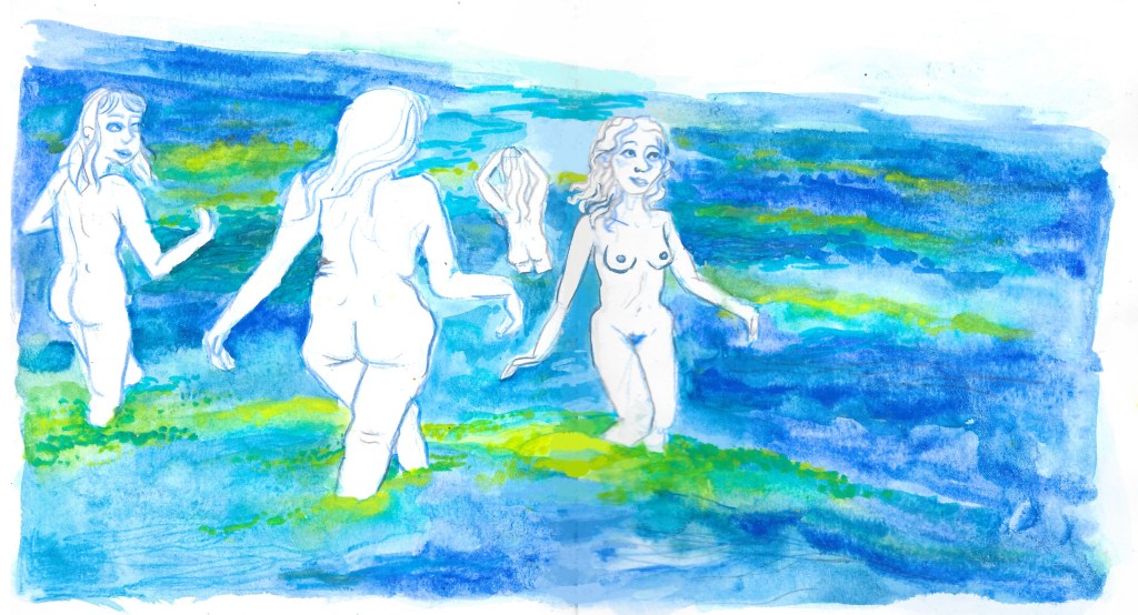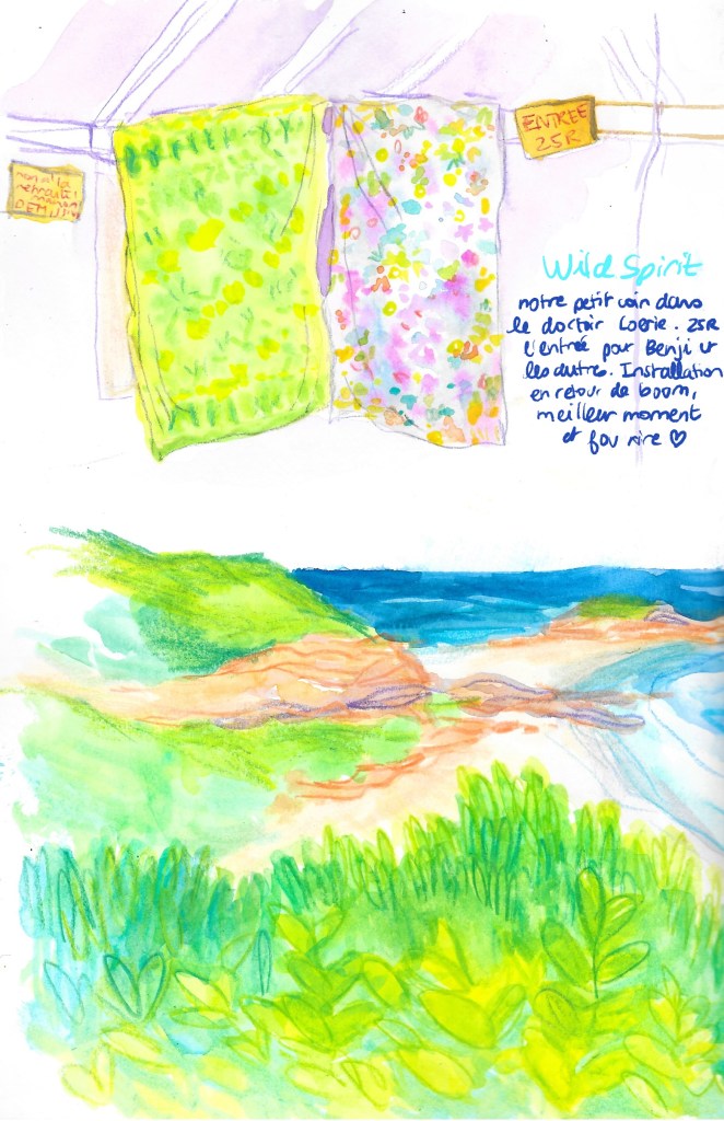 Je vis un des moments les plus fous et magiques de ma vie. Comme tous les soirs, on était un petit groupe autour du feu, les instruments de musique sortis, les joints passant de mains en mains. Quand soundain Klara arrive « I think it’s happening tonight, who wants to come? ». D’un bond je me lève « moi! ». Les planctons bioluminescents! Imprévisibles, mais elle a entendu par quelqu’un qui a entendu par quelqu’un. La mer est à 20min en voiture, on est pas certaines mais très motivées pour aller vérifier. Très rapidement on a une voiture de filles, puis on trouve une voiture. On arrive à la plage, la mer est assez basse, pour l’instant on voit rien. On s’approche en silence, et là les premiers cris d’émerveillement, le sable qui s’illumine sous nos pas, puis les flash lumineux crées par le mouvement des vagues. Plus on s’approche de l’eau, plus c’est fort, plus c’est mafique, une ivresse de bonheur nous monte à la tête. Sans rien se dire on se met toutes nues et on court dans les vagues pour faire briller le plancton sur nos corps. Seules sur cette plage immense, j’ai une sensation inrcoyable d’harmonie avec la nature et l’Humain, avec ces femmes que je connaissais pas il y a 1 heure.